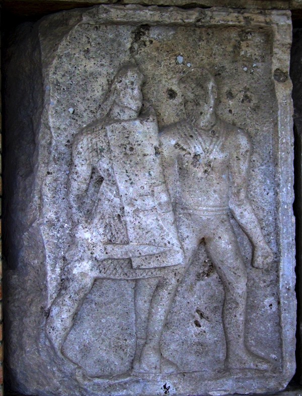 The style of the metopes has generated much debate amongst archaeologists and art historians; the figures stand out not for their classical features or fine technique, but due to the roughness with which they have been sculpted. Both Roman soldiers and barbarians alike lack realism, and have been criticised for their “crude” nature, which reveals “typical traits of the contemporary Roman provincial art” (Rossi, “A synoptic outlook,” p. 474). Iain Richmond even stated that “the sculptors of the metopes were often barely equal to the task which they were set” (“Adamklissi,” p. 38). The monument is, however, a military commemoration rather than a public monument; the graphic scenes of battle may lack realism, but their message is instantly recognisable and intended to convey the horror of war with Rome, as well as the brutal nature of Roman victory. The simplified nature of the reliefs may have been designed to clarify imperial iconography for a provincial or foreign audience, for whom the complexity of complicated figure-scenes made ineffective their ability to carry particular messages. By clarifying the scenes of the metopes, the message of Roman power was underscored and emphasised to the monument’s viewers. As Jas Elsner has noted, the reliefs are presented with all the “vitality, vigour and non-classicism of barbarian art,” which would have been immediately recognisable to the conquered audience (Elsner, Imperial Rome and Christian Triumph, p. 125-126). Although the Tropaeum Traiani unquestionably promotes the message of Roman victory in Dacia, its un-Roman style permits the conquered Dacians a “visual voice,” and gave them a place in the narrative that was “familiar, even natural” (Elsner, Imperial Rome and Christian Triumph, p. 126). The Tropaeum therefore served a double purpose; it both commemorated and acclaimed Trajan’s victory in Dacia, whilst also assimilating to local traditions. Although the scenes of battle and the capture of the Dacians depicted here are brutal and relentless, “the trophy’s propagation of an imperial theme to the provinces shows a marked sensitivity to local conditions and needs” (Elsner, Imperial Rome and Christian Triumph, p. 126). Rome’s needs, however, superseded those of the native Dacians; Trajan established a colony close to the site of the monument and named it after the colossal structure: Municipium Tropaeum Traiani (for the history of the municipium, see Panaite, “Tropaeum Traiani, from civitas to municipium, a hypothesis,” p. 162-173). Colonists arriving at the new town would have had to walk past the monument, and have been reassured by the definitive presence of Rome’s victory in what had previously been a troubled and combative region. The Tropaeum represented the final word in the conflict between Rome and Dacia, and indicated the security brought by the emperor’s military achievements.